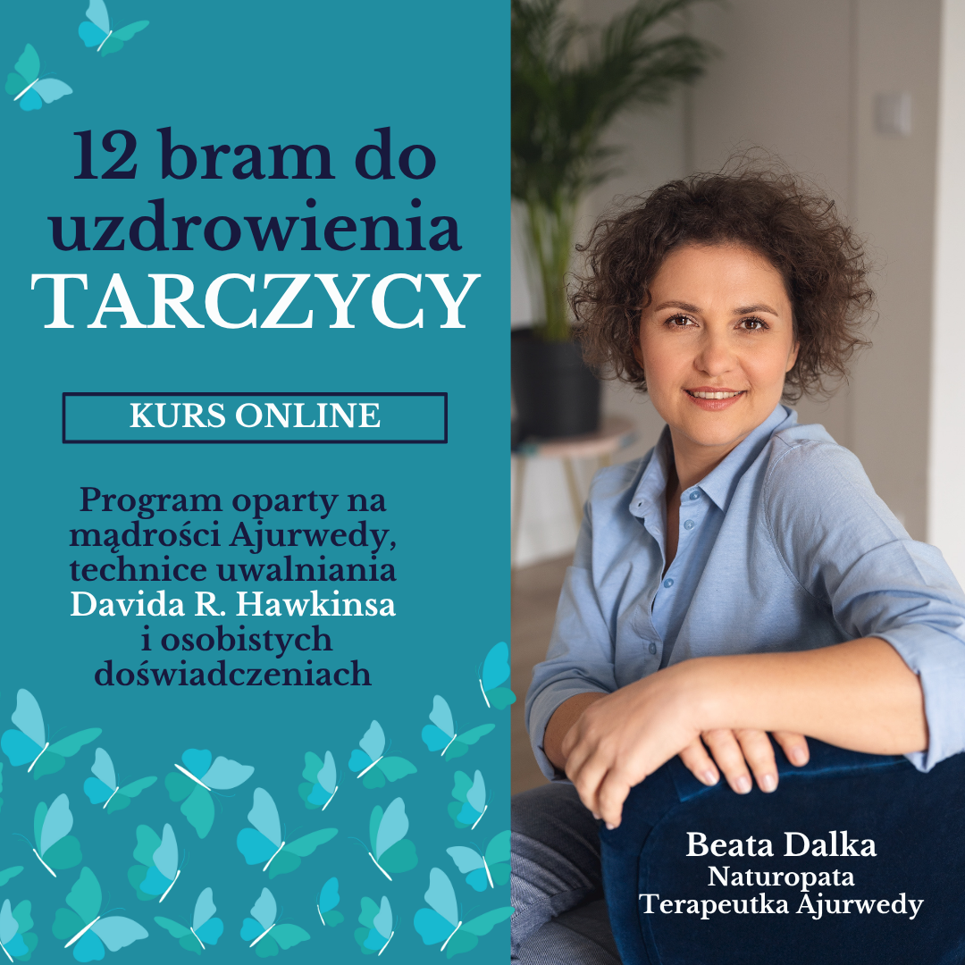 W tym kursie pokażę Ci jak uzdrowić swoją tarczycę bez efektów ubocznych a z korzyściami ubocznymi jakie przynosi Ajurweda i technika uwalniania Davida R. Hawkinsa. Poznasz przyczyny swoich dolegliwości i naturalne rozwiązania, które wspierają odbudowę sił obronnych organizmu i wzmocnią cię holistycznie na każdym poziomie abyś miała dużo energii aby prowadzić zdrowe i wartościowe życie.